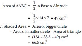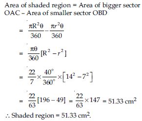 Radius of smaller circle (r) = 7 cm Radius of bigger circle (R) = 14 cm Central angle AOC () = 40