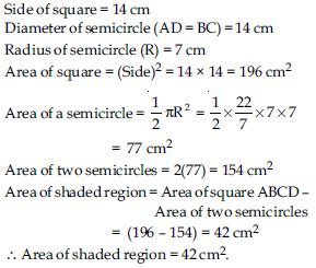 Find the area of the shaded region in fig., if ABCD is a square of side 14 cm and APD and BPC are semicircles.
