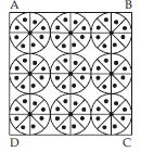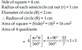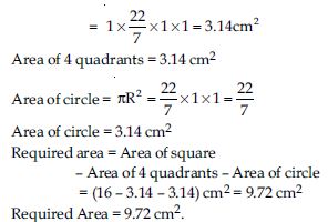 From each corner of a square of side 4 cm a quadrant of a circle of radius 1 cm is cut and also a circle of diameter 2 cm is cut as shown in fig. Find the area of the remaining portion of the square.