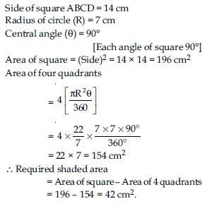 In fig., ABCD is a square of side 14 cm. With centres A, B, C and D, four circles are drawn such that each circle touch externally two of the remaining three circles. Find the area of the shaded region.