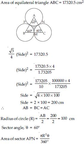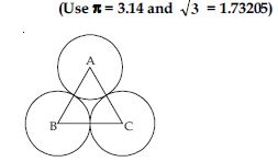 17320.5 cm2. With each vertex of the triangle as centre, a circle is drawn with