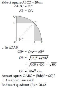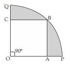 In fig., a square OABC is inscribed in a quadrant OPBQ. If OA = 20 cm, find the area of the shaded region. (Use = 3.14)