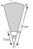 AB and CD are respectively arcs of two concentric circles of radii 21 cm and 7 cm and centre O (see fig.) If ∠AOB = 30º, find the area of the shaded region.