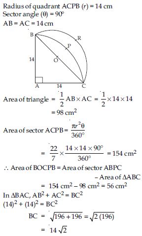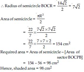 In fig., ABC is a quadrant of a circle of radius 14 cm and a semicircle is drawn with BC as diameter. Find the area of the shaded region.