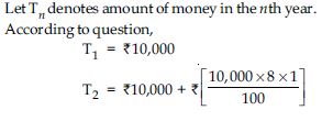 The amount of money in the account every year when ₹10,000 is deposited at compound interest at 8% per annum.