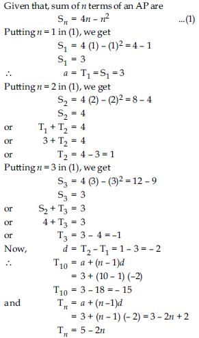 If the sum of the first n terms of an AP is 4n - n2, what is the first term (that is S1)? What is the sum of two terms? What is the second term?