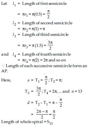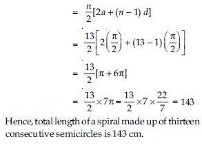 A spiral is made up of successive semicircles, with centres alternately at A and B, starting with centre at A, of radii 0.5 cm, 1.0 cm, 1.5 cm, 2.0 cm, .... as shown in fig. What is the total length of such a spiral made up of thirteen consecutive semicircles?