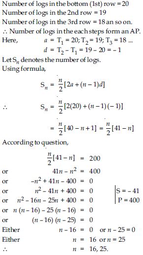 200 logs are stacked in the following manner: 20 logs in the bottom row, 19 in the next row, 18 in the row next to it and so on (see fig). In how many rows are the 200 logs placed and how many logs are in the top row?