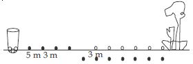 In a potato race, a bucket is placed at the starting point, which is 5 m from the first potato, and the other potatoes are placed 3 m apart in a straight line. There are ten potatoes in the line (see fig.)