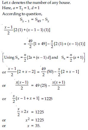 The houses of a row are numbered consecutively from 1 to 49. Show that there is a value of x such that the sum of the numbers of the houses preceding the house numbered x is equal to the sum of the numbers of the houses following it and find this value of x.