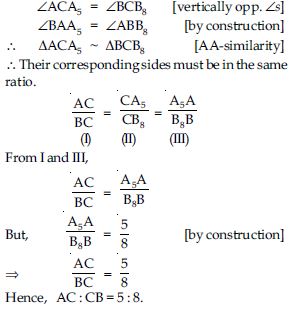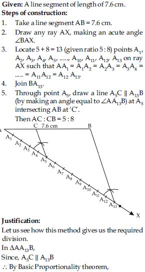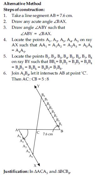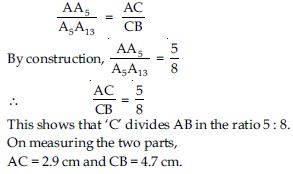 Draw a line segment of length 7.6 cm and divide it in the ratio 5 : 8. Measure the two parts.