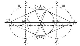 Draw a circle of radius 3 cm. Take two points P and Q on one of its extended diameter each at a distance of 7 cm from its centre. Draw tangents to the circle from these two points P and Q.