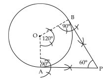 Steps of construction: 1. Draw a circle of radius 3 cm and centre O.