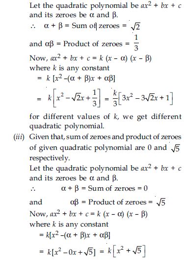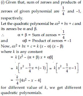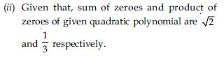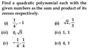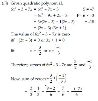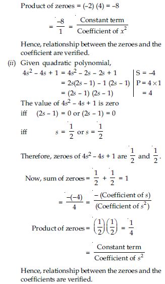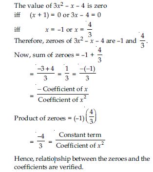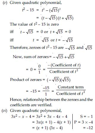 Find the zeroes of the following quadratic polynomials and verify the relationship between the zeroes and the coefficients.