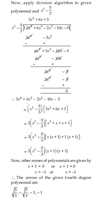“Polynomial” is a chapter in Class 10th Math that provides the explanation of linear polynomial, cubic polynomial, degree of the polynomial, and quadratic polynomial. The chapter consists of 4 exercises to help students understand the chapter properly. The first exercise has questions related to a graph where students have to find the number of zeroes. To solve this exercise, students need to know about the geometrical meaning of the zeroes of a polynomial. The second exercise includes questions related to quadratic polynomials. Exercise 2.3 consists of the questions based on the division algorithm. And the last exercise has questions from all the topics of Math Chapter 2.