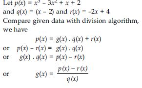 On dividing x3 - 3x2 + x + 2 by a polynomial g(x), the quotient and remainder were x - 2 and -2x + 4 respectively, find g(x).