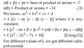 Find a cubic polynomial with the sum, sum of the product of its zeroes taken two at a time, and the product of its zeroes as 2, –7, –14 respectively.