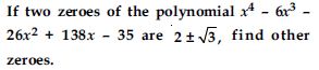 If the zeroes of the quadratic polynomial ax2 + bx + c, c 0 are equal, then: