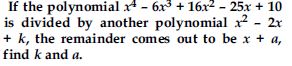 Quotient on division of x6 + 2x3 + x – 1 by a