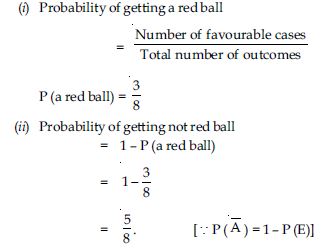 A bag contains 3 red balls and 5 black balls. A ball is drawn at random from the bag. What is the probability that the ball drawn is (i) red? (ii) not red?