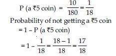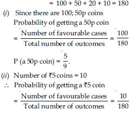 A piggy bank contains hundred 50p coins, fifty ₹1 coins, twenty ₹2 coins and ten ₹5 coins. If it is equally likely that one of the coins will fall out when the bank is turned upside down, what is the probability that the coin (i) will be a 50p coin? (ii) will not be a ₹5 coin?