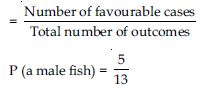 Gopi buys a fish from a shop for his aquarium. The shopkeeper takes out one fish at random from a tank containing 5 male fish and 8 female fish. What is the probability that the fish taken out is a male fish?