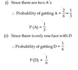 The die is thrown. What is the probability of getting (i) A? (ii) D?