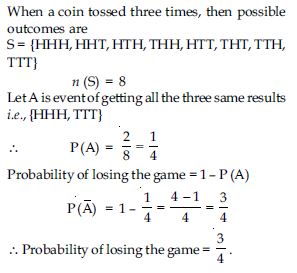A game consists of tossing a one rupee coin 3 times and noting its outcome each time. Hanif wins if all the tosses give the same result i.e., three heads or three tails, and loses otherwise. Calculate the probability that Hanif will lose the game.