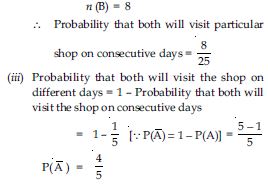 Two customers Shyam and Ekta are visiting a particular shop in the same week (Tuesday to Saturday). Each is equally likely to visit the shop on any day as on another day. What is the probability that both will visit the shop on (i) the same day? (ii) consecutive days? (iii) different days?