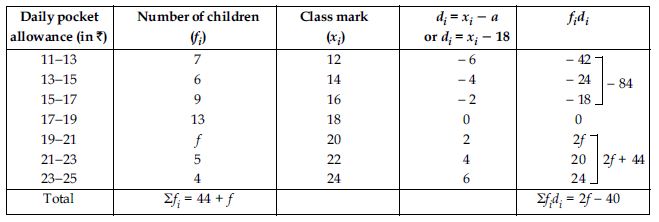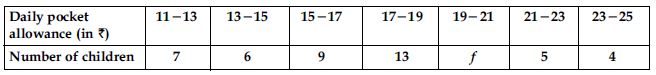 The following distribution shows the daily pocket allowance of children of a locality. The mean pocket allowance is ₹ 18. Find the missing frequency f.