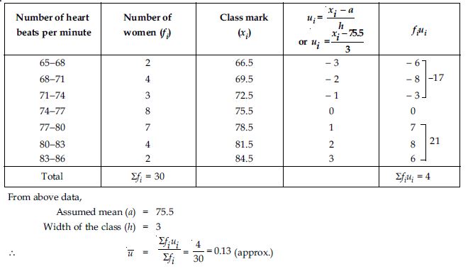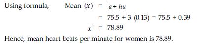Thirty women were examined in a hospital by a doctor and the number of heart beats per minute were recorded and summarised as follows. Find the mean heart beats per minute for these women, choosing a suitable method.