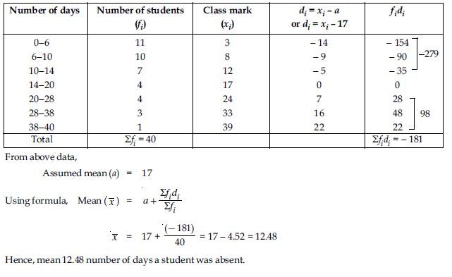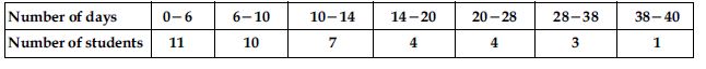 A class teacher has the following absentee record of 40 students of a class for the whole term. Find the mean number of days a student was absent.