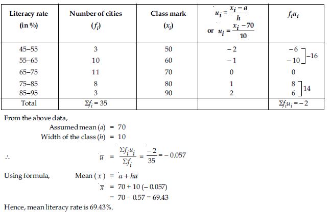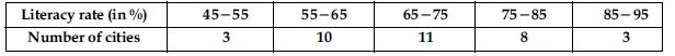 The following table gives the literacy rate (in percentage) of 35 cities. Find the mean literacy rate.