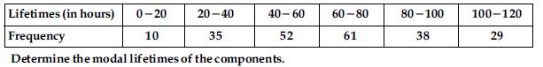 The following data gives the information on the observed lifetimes (in hours) of 225 electrical components: