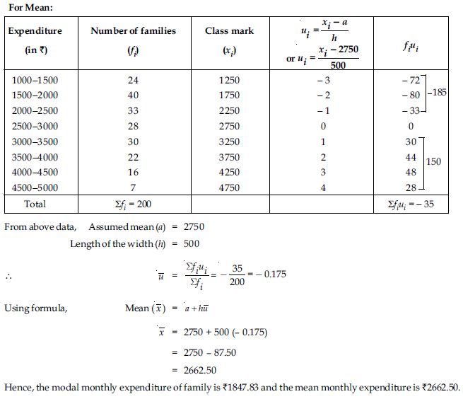 The following data gives the distribution of total monthly household expenditure of 200 families of a village. Find the modal monthly expenditure of the families. Also, find the mean monthly expenditure: