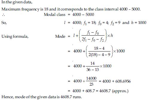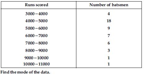 The given distribution shows the number of runs scored by some top batsmen of the world in one-day international cricket matches.