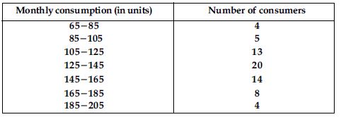 The following frequency distribution gives the monthly consumption of electricity of 68 consumers of a locality. Find the median, mean and mode of the data and compare them.