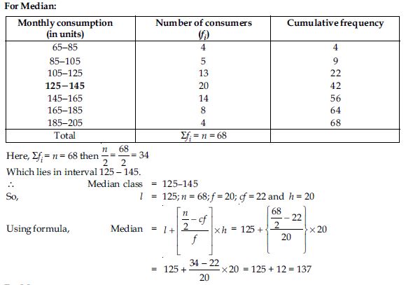 Hence, median, mean and mode of given data is 137 units; 137.04 units and 135.77 units.