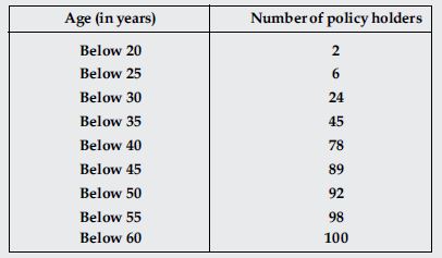 A life insurance agent found the following data for distribution of ages of 100 policy holders. Calculate the median age, if policies are given only to persons having age 18 years onwards but less than 60 year.