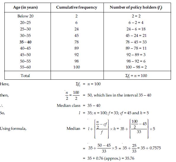 Hence, median age of given data is 35.76 years.
