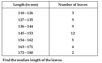The lengths of 40 leaves of a plant are measured correct to the nearest millimetre, and the data obtained is represented in the following table: