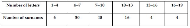 100 surnames were randomly picked up from a local telephone directory and the frequency distribution of the number of letters in the English alphabets in the surnames was obtained as follows: