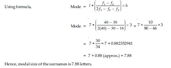 Determine the median number of letters in the surnames. Find the mean number of letters in the surnames. Also, find the modal size of the surnames.