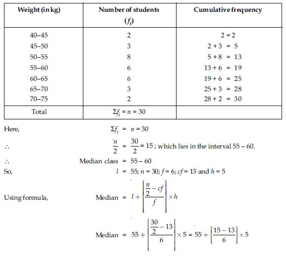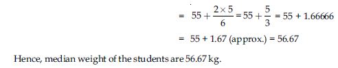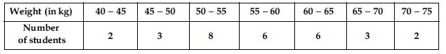 The distribution below gives the weights of 30 students of a class. Find the median weight of the students.