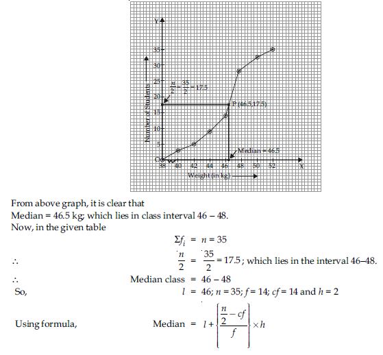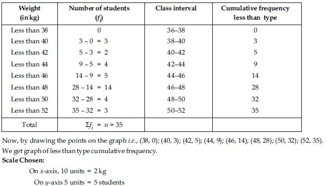 During the medical check up of 35 students of a class, their weights were recorded as follows: