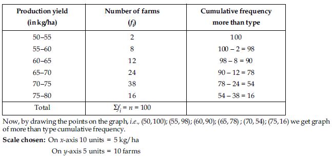 The following table gives production yield per hectare of wheat of 100 farms of a village.