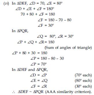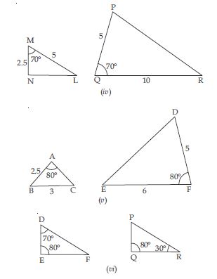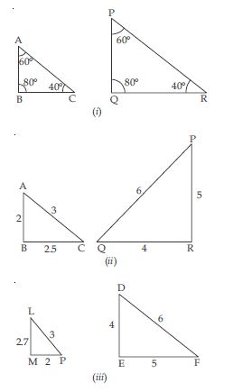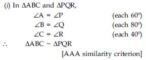 State which pairs of triangles in fig. are similar. Write the similarity criterion used by you for answering the question and also write the pairs of similar triangles in the symbolic form: