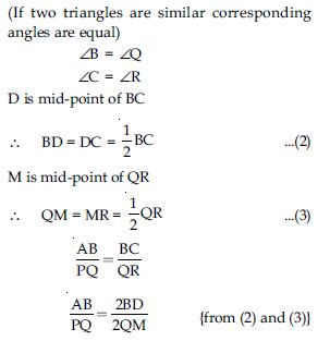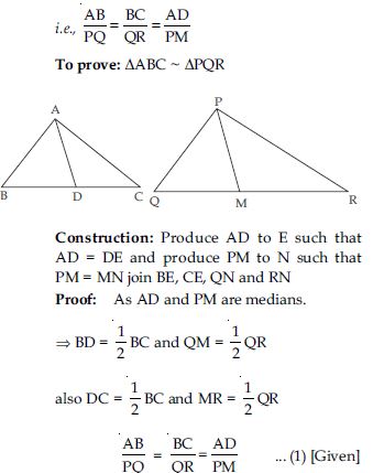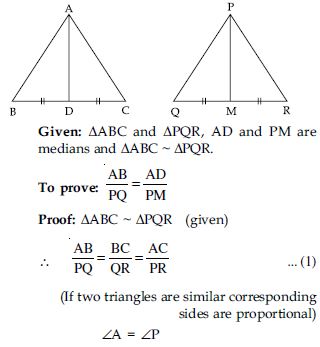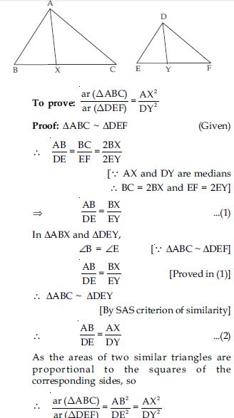 Prove that the ratio of the areas of two similar triangles is equal to the square of the ratio of their corresponding medians.
