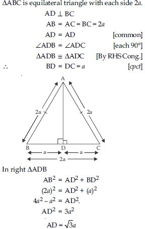 ABC is an equilateral triangle of side 2a. Find each of its altitudes.