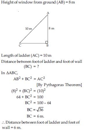 A ladder 10 m long reaches a window 8 m above the ground. Find the distance of the foot of the ladder from base of the wall.